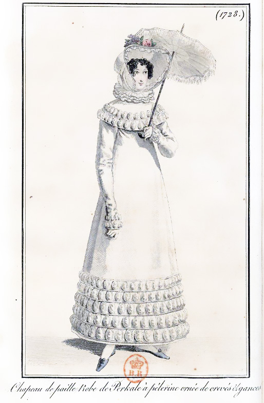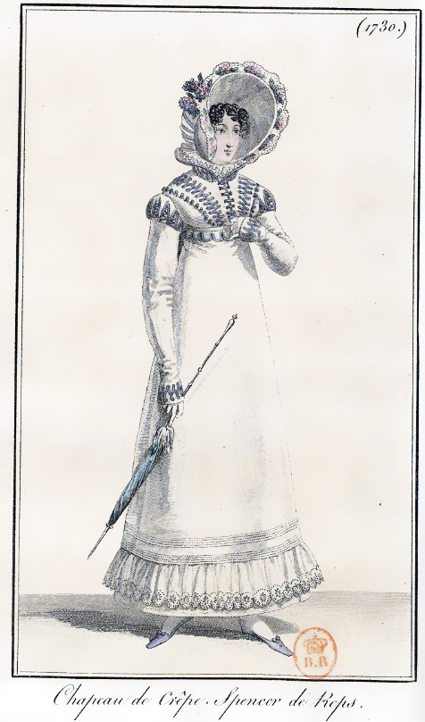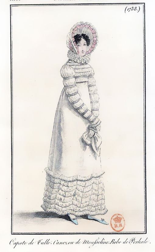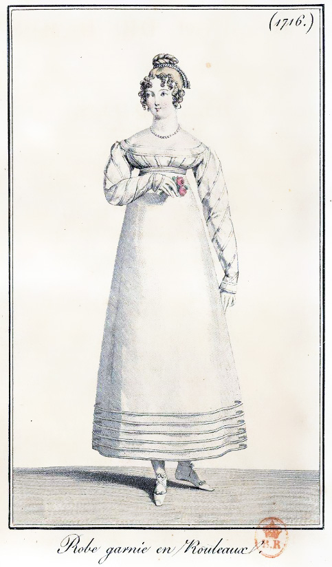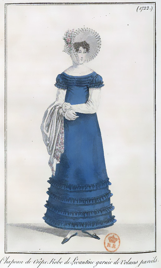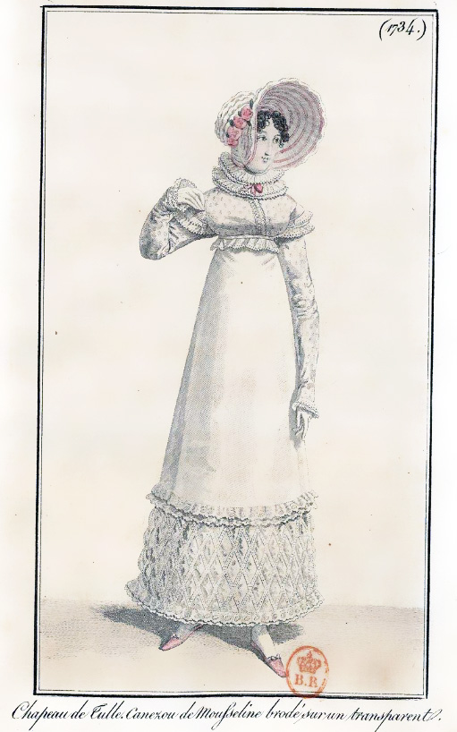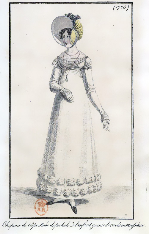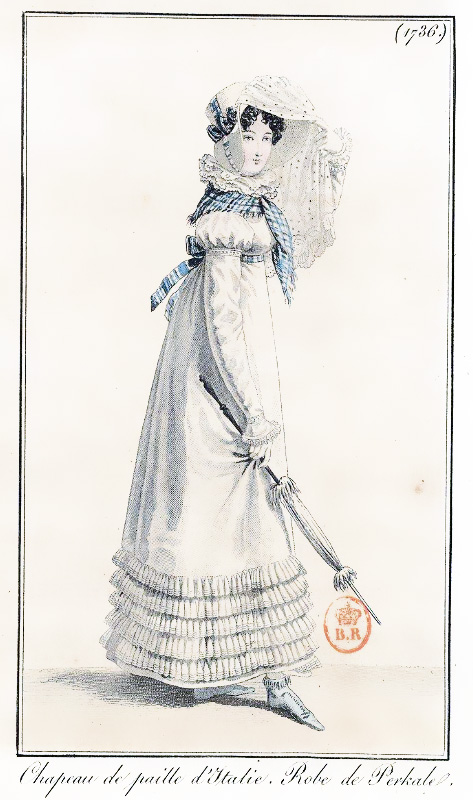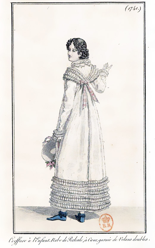 This afternoon I was glancing through a publication from the Kyoto Costume Institute when I found a reference to “Journal Des Dames.” I hurried back to my computer and found the journal in the library of France! While I was working on my latest WIP, I kept Photoshop running and one by one made hasty restorations of the images. ย Hopefully, I shall have more to post in the coming days.