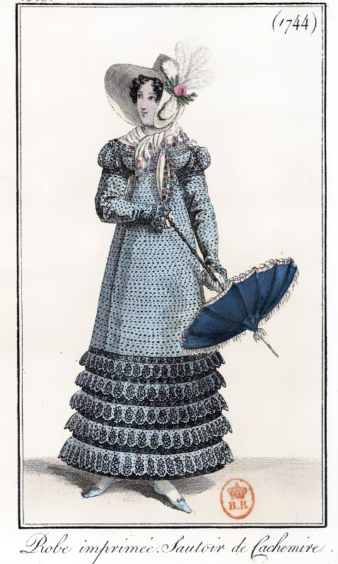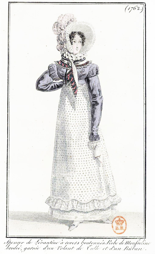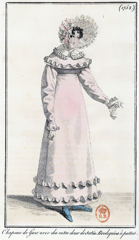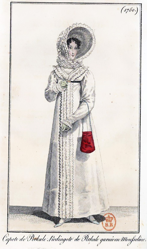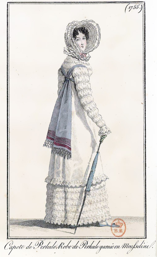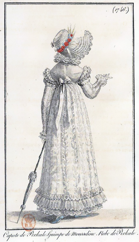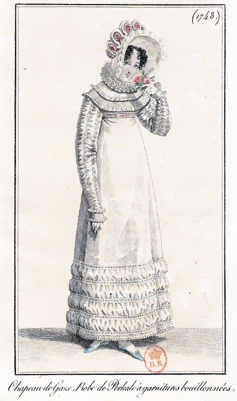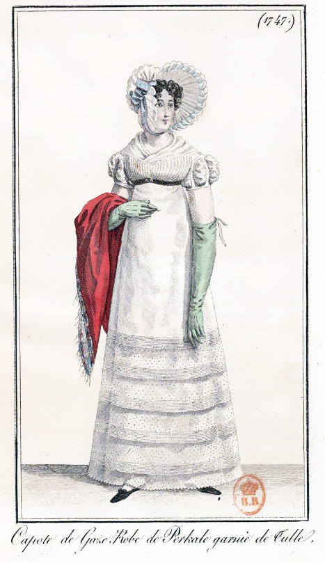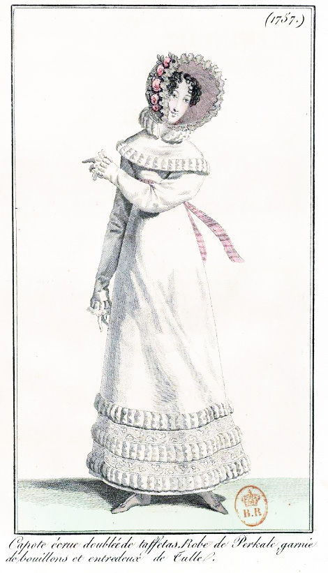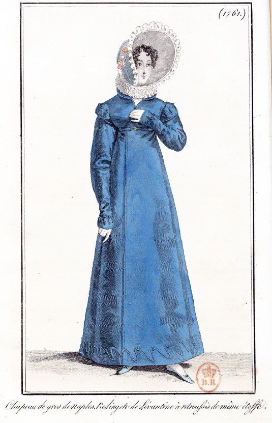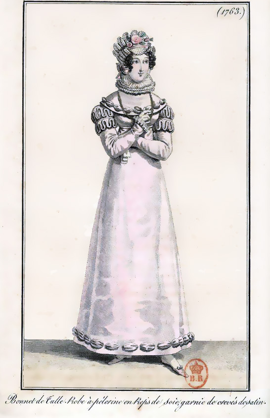 I’m having great fun restoring fashion images from the 1818 editions of Journal Des Dames et Des Mode that I found in the library of France. I should have more pictures ready to post tomorrow or the next day.
