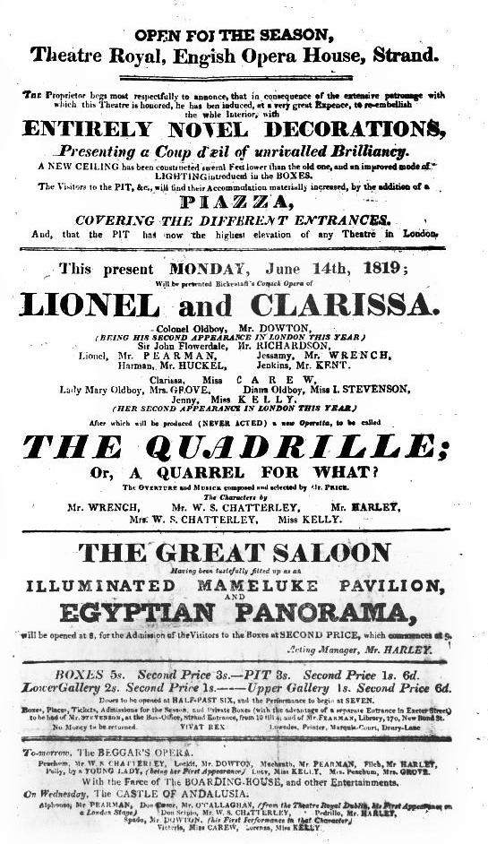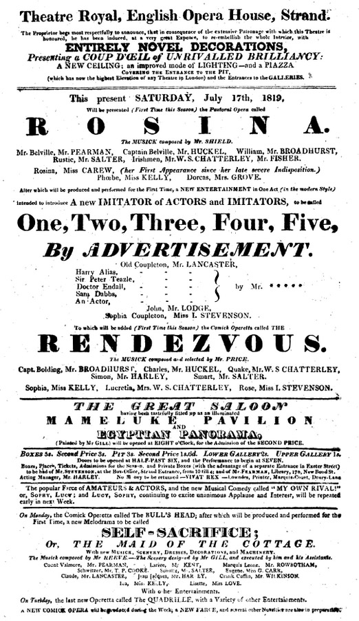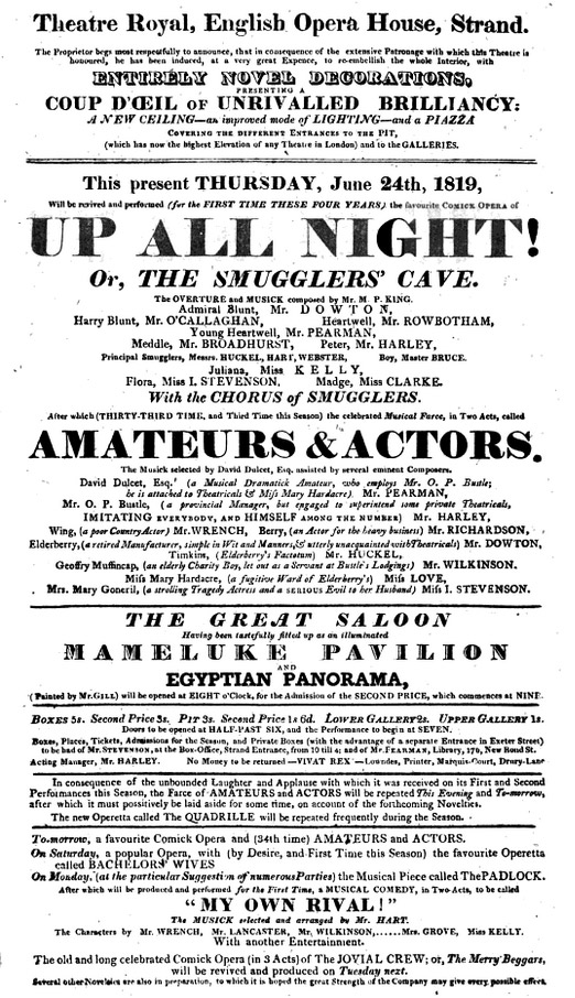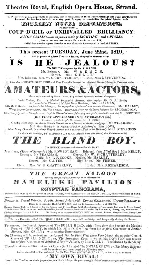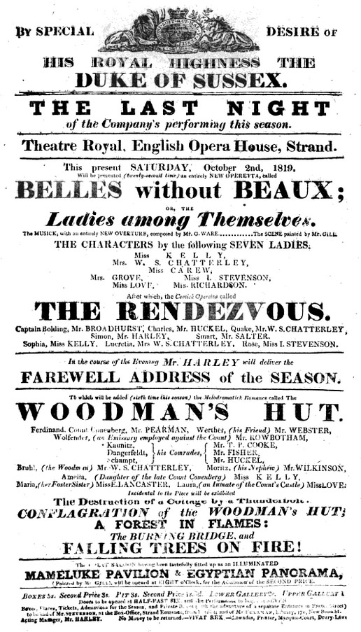 The old theatre in Orchard-street, is now completely abandoned; and the proprietors have built upon the tontine scheme, a new house, of which the front is in Beaufort-square.—A few records of the actors. A Mr. Egerton is the hero, and has a very tolerable notion of general acting. He is an inferior kind of Elliston. Mr. Sedley plays the young gentleman: he looks such parts extremely well. But by way of making amends for any deficiencies that may have subsisted in some branches of the company, the managers of Bath, like those of most other country towns, have retained the services of Master Betty, who has been playing here—about as well as he used to play in town. In London the mania has a little subsided; Miss Mudie has been condemned, and children are no longer the fashion: but at Bath there were persons to be found whom Master Betty bit, and who thought him, as he was at first thought in London, a prodigy. It is not, perhaps, surprising that he should have been admired in many country towns, because, in point of fact, there are few country actors who altogether excel him: but that the people at Bath should have admired him, when almost all of them have had opportunities of seeing London actors, would, I confess, have surprised me a little, if I had not read the observation, which your theatrical critic, in a former number, has made on what is commonly called the taste of the public—